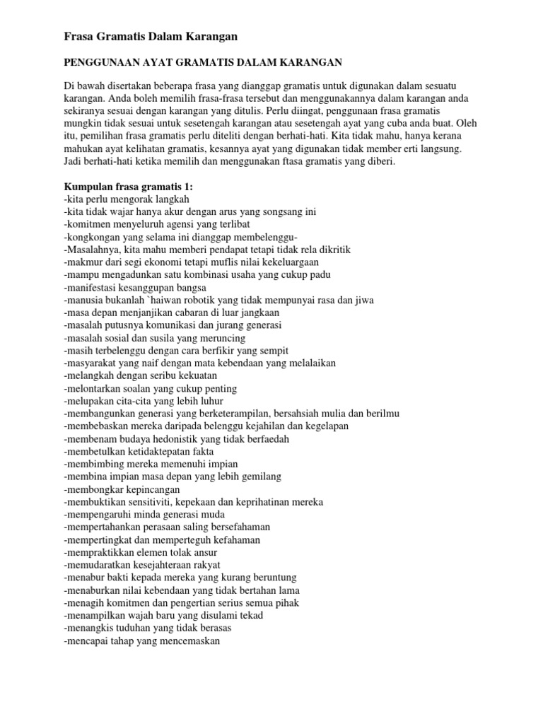 Penggunaan Ayat Gramatis Dalam Karangan Pdf